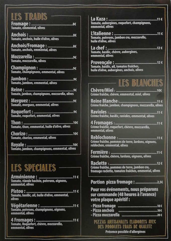 Passer votre pause au calme avec des plats simples et délicieux : si c’est ce que vous avez prévu, venez faire un petit tour chez nous. Laissez-vous séduire par les excellentes offres de notre food truck – qu’il s’agisse de snacks ou de plats normaux pour une faim de loup. Chez le La Kaza Pizz, vous trouverez quelque chose pour chaque occasion.